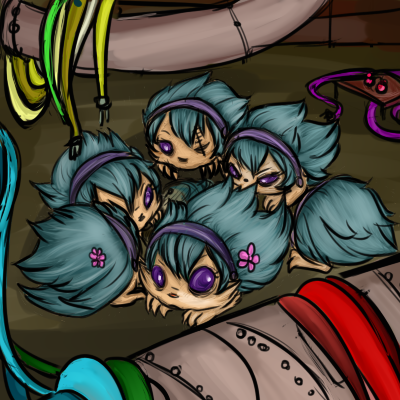 "Why are people panicking outside?" One of the cyborgs asked that. You don't know which one it was, and none of them bother to step up. You explain about Gear. They all nod, say "tough break" or something along those lines, and go back to that thing they've been crowded around.