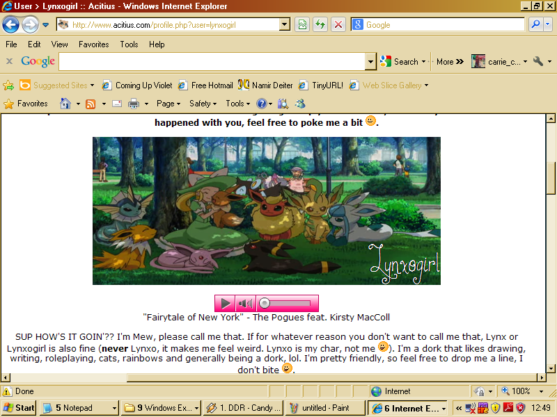 Okay, so.. I think that covers everything, so here's the code. Just copy and paste the code from the little box below. Remember to change the url/colours, unless you actually want "Fairytale of New York" in a hot pink player on your profile or something. :P