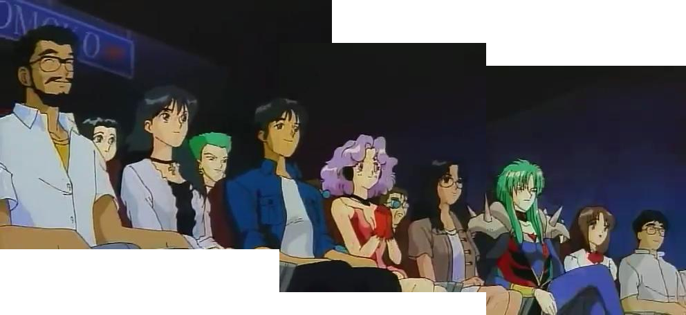 Middle row: ?, Igneous, Takuro Amano, ?, Shinichi Kaji (ep 13), ?, ? Back row: only char I recognize is Pump (ep 30), just visible behind Jama-P Overhead: Jama-P |